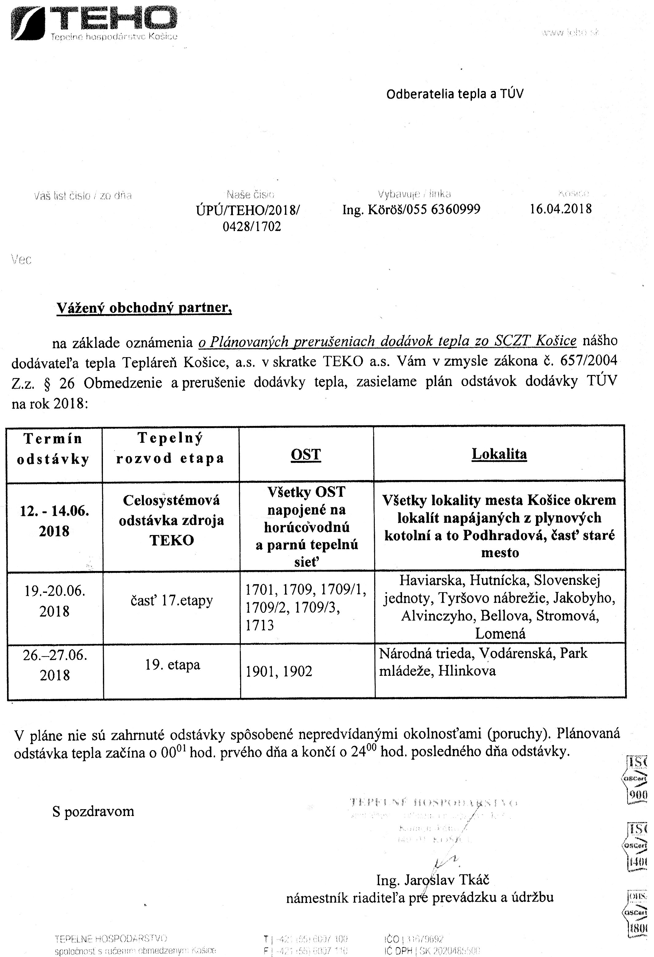 Plánovaná odstávka teplej vody.